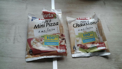 Mini pizza et chaussons à la viande J'ai testée la " pâte à mini pizza à ma façon" de chez Herta , avec 8 mini ronds de pizza et la " pâte à chaussons à ma façon " toujours de chez Herta avec 16 ronds de pâtes . C'est un produit sympa je trouve , l'épaisseur de la pâte est juste comme il faut , la date de conservation est assez longue ce qui permet d'en avoir dans le frigo pour les jours ou l'on ne sait pas quoi faire . J'ai fais les pizzas à la viande hachée et au gruyère râpé Voilà le résultat : tout le monde que régalé . Les chaussons eux je les ai fait avec une préparation viande hachée , sauce tomate , maïs et gruyère . En plus j'ai un appareil à chaussons Tupperware qui va bien cordialement et la pâte rentre pile dedans . Avant cuisson : les chaussons fermés Et voilà le résultat , après ils auraient pu être plus joli mais je ne les ai pas pas doré et décoré avec un jaune d'œuf . Mais le principal c'est ...